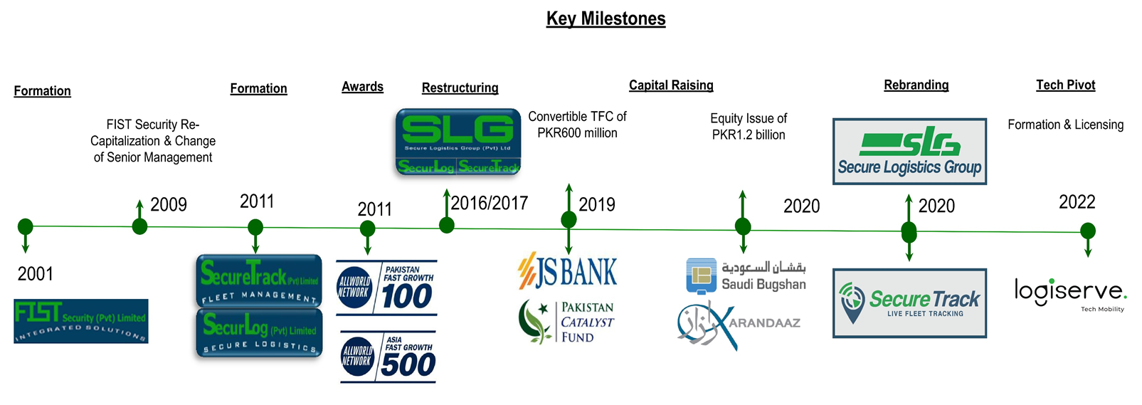 From 2016 to 2023, the Company has evolved to three main Business Lines and five Support Functions. The Logistic assets along with the Support Functions are part of SLG; Asset Tracking, Tech Logistics (B2B Marketplace) and the remaining technology infrastructure rest within LogiServe; and the Security Services Business Line comprises of FSL and Sky Guard.